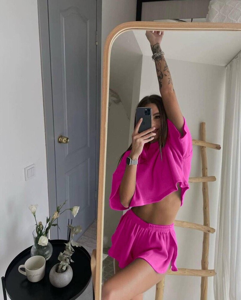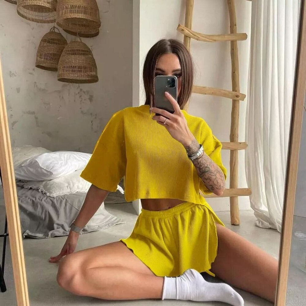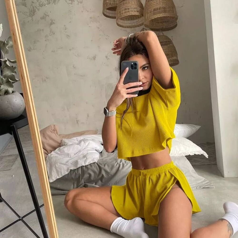 💃Комплект футболка + шорти з розрізом - комфортний та стильний комплект, який ви можете носити не тільки вдома, а в повсякденному
