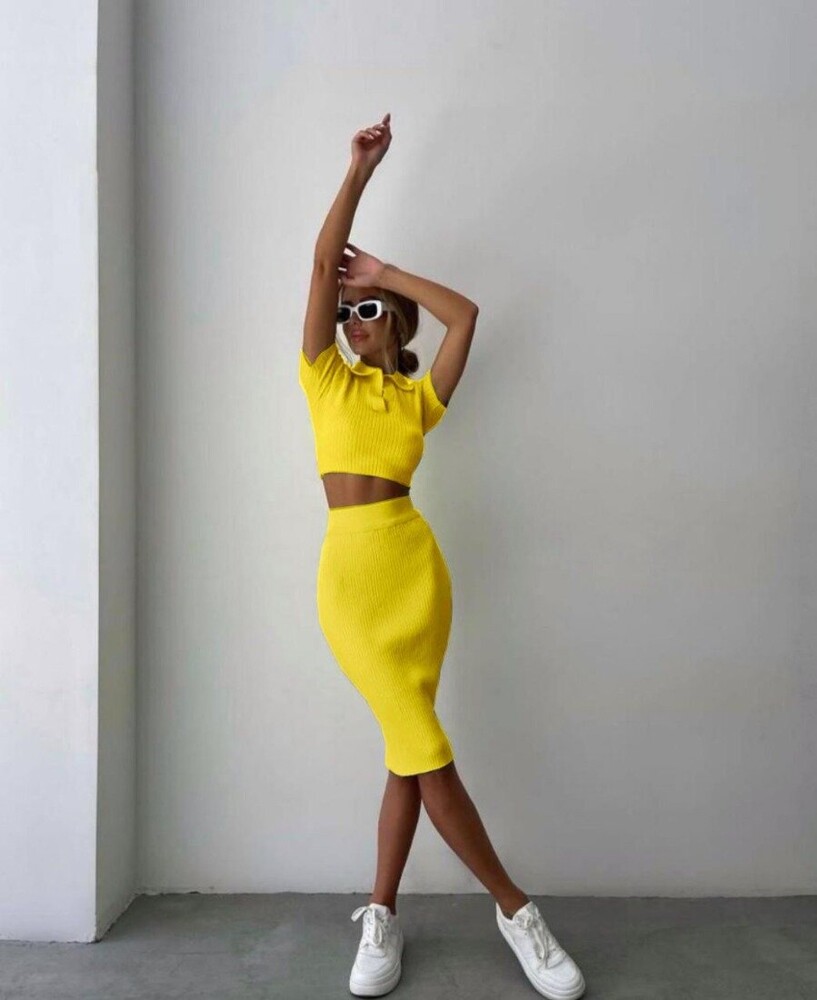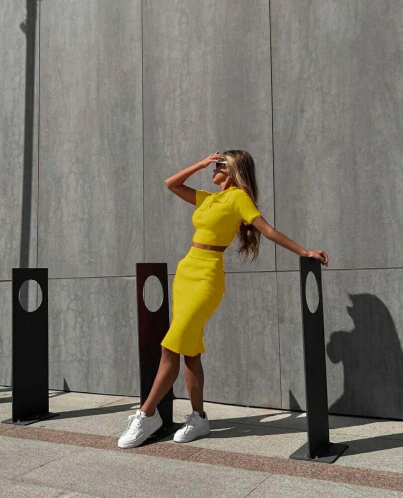 💞Новинка💞    Шикарні костюми 😍❤️ (спідниця та кофта) ☑️Мод. 457 ☑️Розмір універсал 42-46 ☑️ Тканина рубчик Мустанг 🎈 ☑️Колір чорний 🖤та жовтий Зручні та дуже стильні 😈 Ви тільки подивіться на цю красу 🔥❤️ Ви будете карколомні